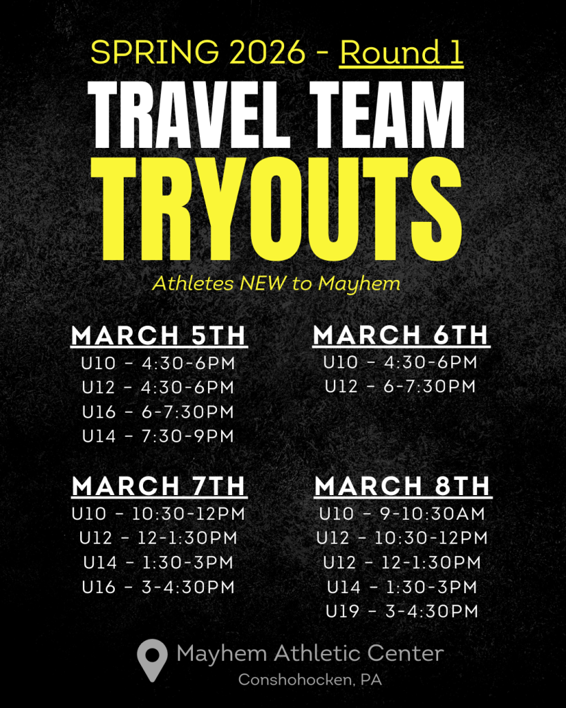 - Athletes RETURNING to Mayhem should register for Round 2